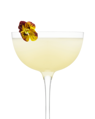 - Fine strain the drink into a chilled coupette glass.