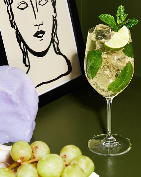 Your glassware will make all the difference – opt for a large wine glass with plenty of room for ice, or you can further elevate your cocktail with an effortlessly chic St‑Germain Hugo Spritz highball glass.