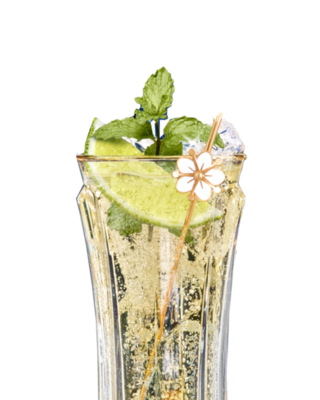 After gently stirring 8-10 mint leaves with St‑Germain Elderflower Liqueur and adding your remaining ingredients, top each glass with a single lime wedge and mint sprig. No need to squeeze the lime – your drink will already be perfectly balanced!